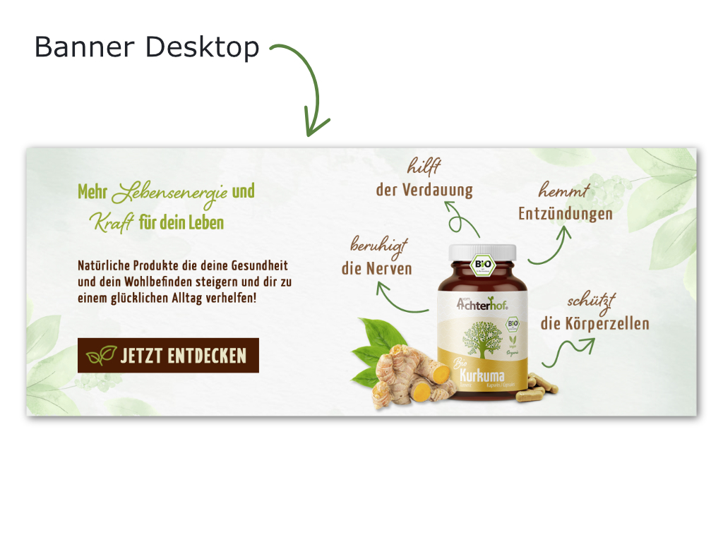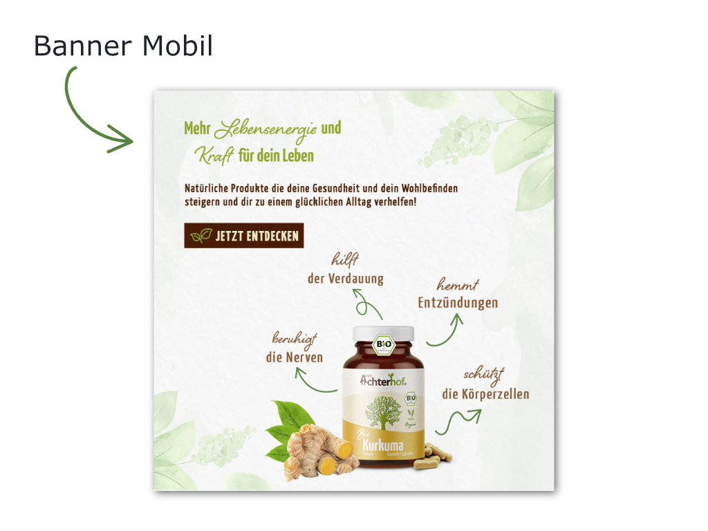 Ziel ist es, mit dem Banner neue Produkte im Bereich Nahrungsergänzungsmittel zu bewerben.